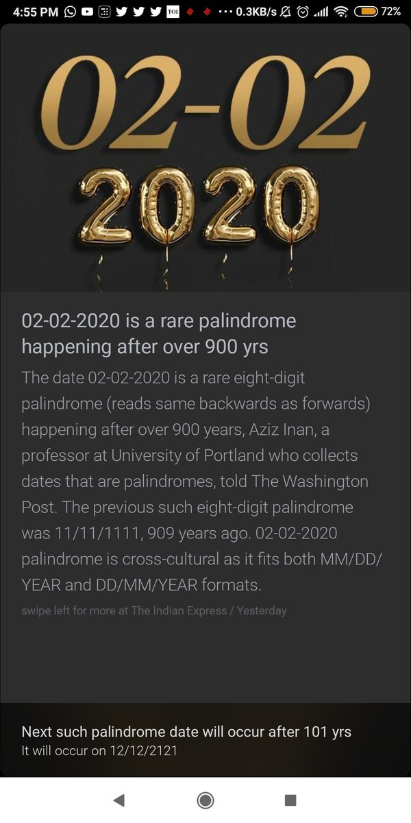 @inshorts@timesofindia@IndianExpress#PalindromeDay#palindrome#PalindromeDate pic.twitter.com/AbUsmErLGM