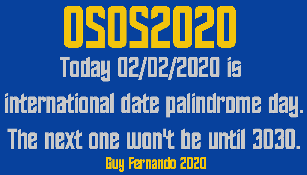 Happy World #PalindromeDate It is the first date in 909 years that can be written the same way both backwards and forwards. 02/02/2020. It's called a “palindromic” day. The next one will occur in 1010 years in 03/03/3030. pic.twitter.com/hCQEIIptyJ -