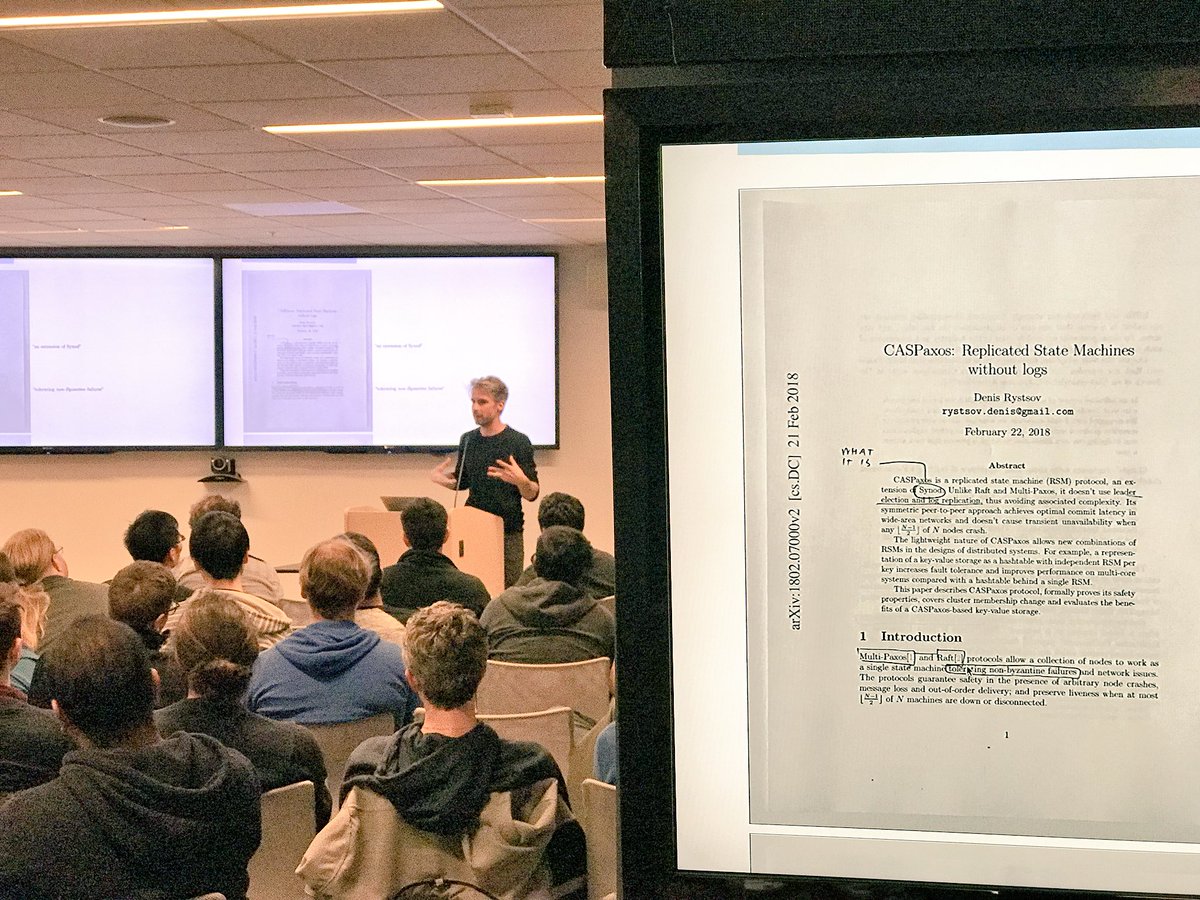 @peterbourgon on CASPaxos: Replicated State Machines without logs https://arxiv.org/pdf/1802.07000.pdf …#PapersWeLove pic.twitter.com/2sW9URFF3O