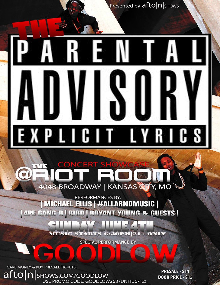 @riotroom WE ARE GOING LIVE!#ParentalAdvisory w/#GOODLOW Presented by@aftonshows DON'T MISS IT!pic.twitter.com/H2pXmaJf7d