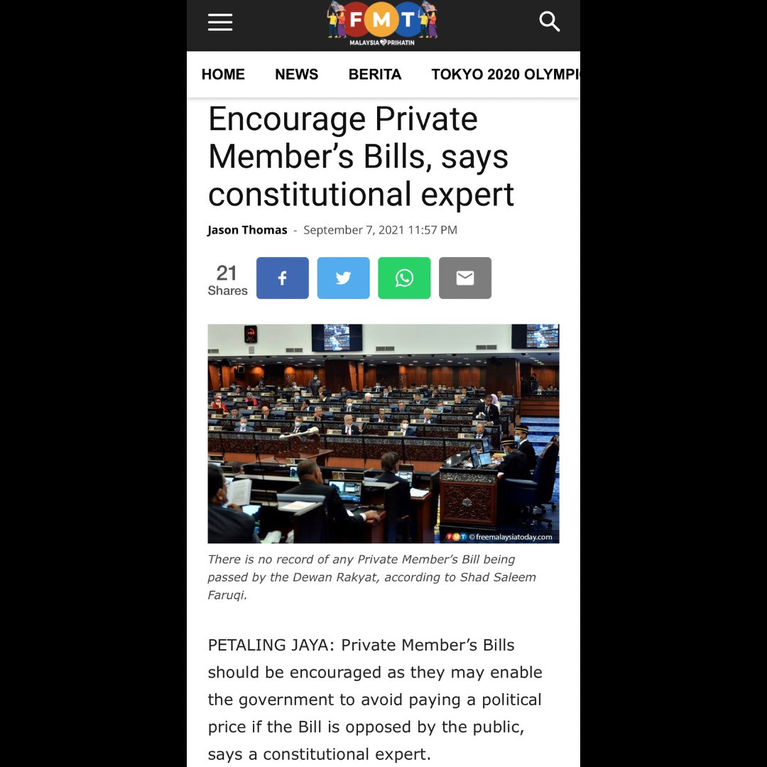 Agree with Prof Shad on both counts. 1. MPs (as lawmakers) shld be encouraged to initiate law reforms. It’s their job to do so. 2. Let the Parliamentary Committees set the agenda!