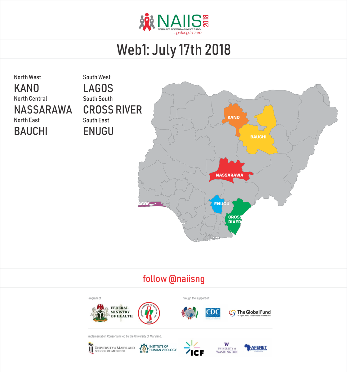 #NAIIS2018 survey will commence in#WEB1 States across the geopolitical zones of Nigeria. WEB 1 STATES: BAUCHI CROSS RIVER ENUGU KANO LAGOS NASSARAWA#Gettingtozero#Participate pic.twitter.com/zxVBg6TvP0