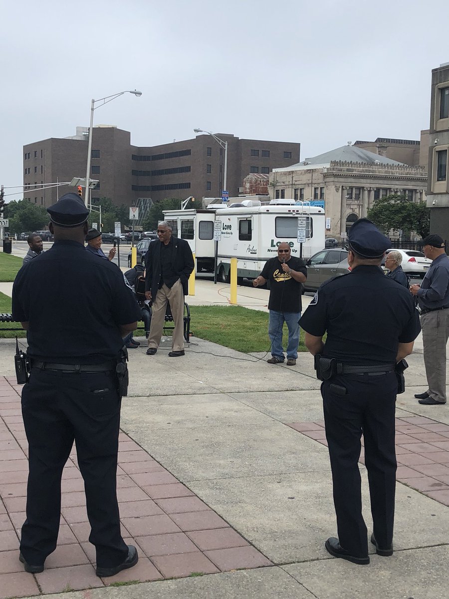 Captain Camacho & Lt James at a Prayer Vigil for Peace at City Hall today.
