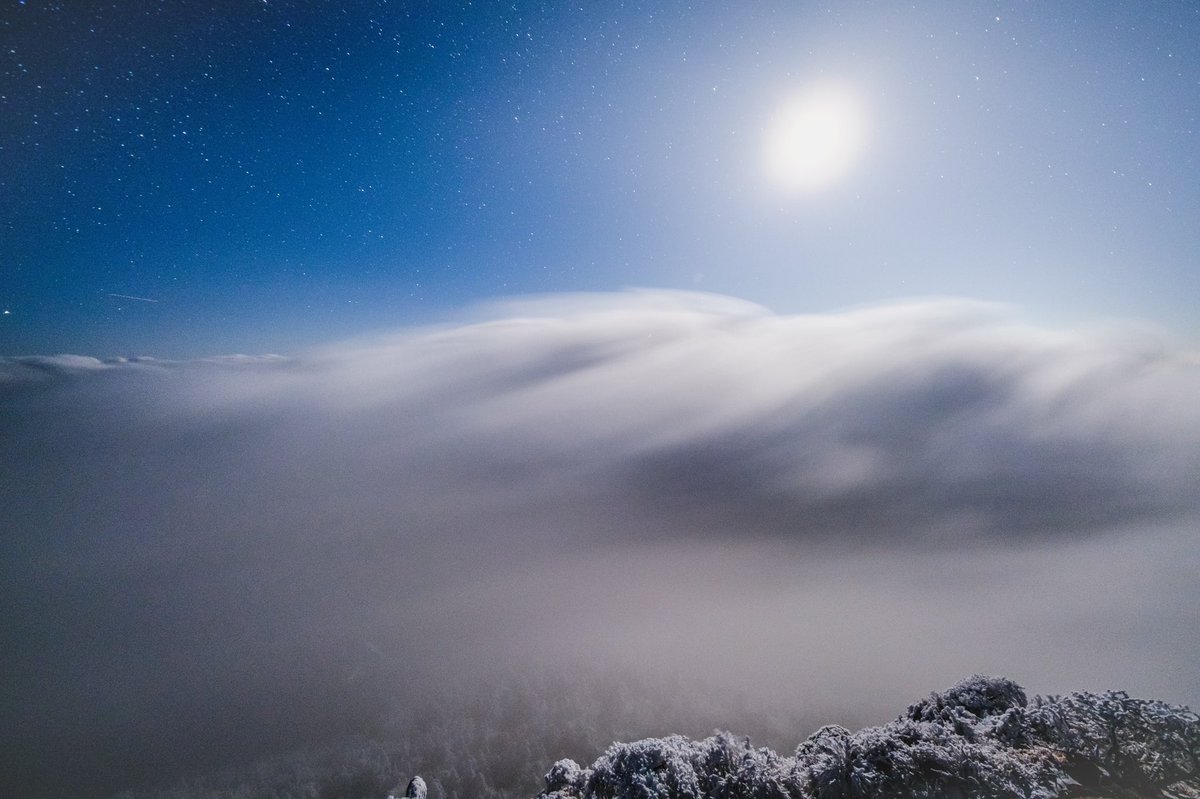 2020年2月 location:石鎚山 冷凍保存された石鎚山に滝雲そして月明かりによるブロッケン現象にひょっこり天の川。 かなり盛りだくさんな石鎚山でした。 朝もやばかった