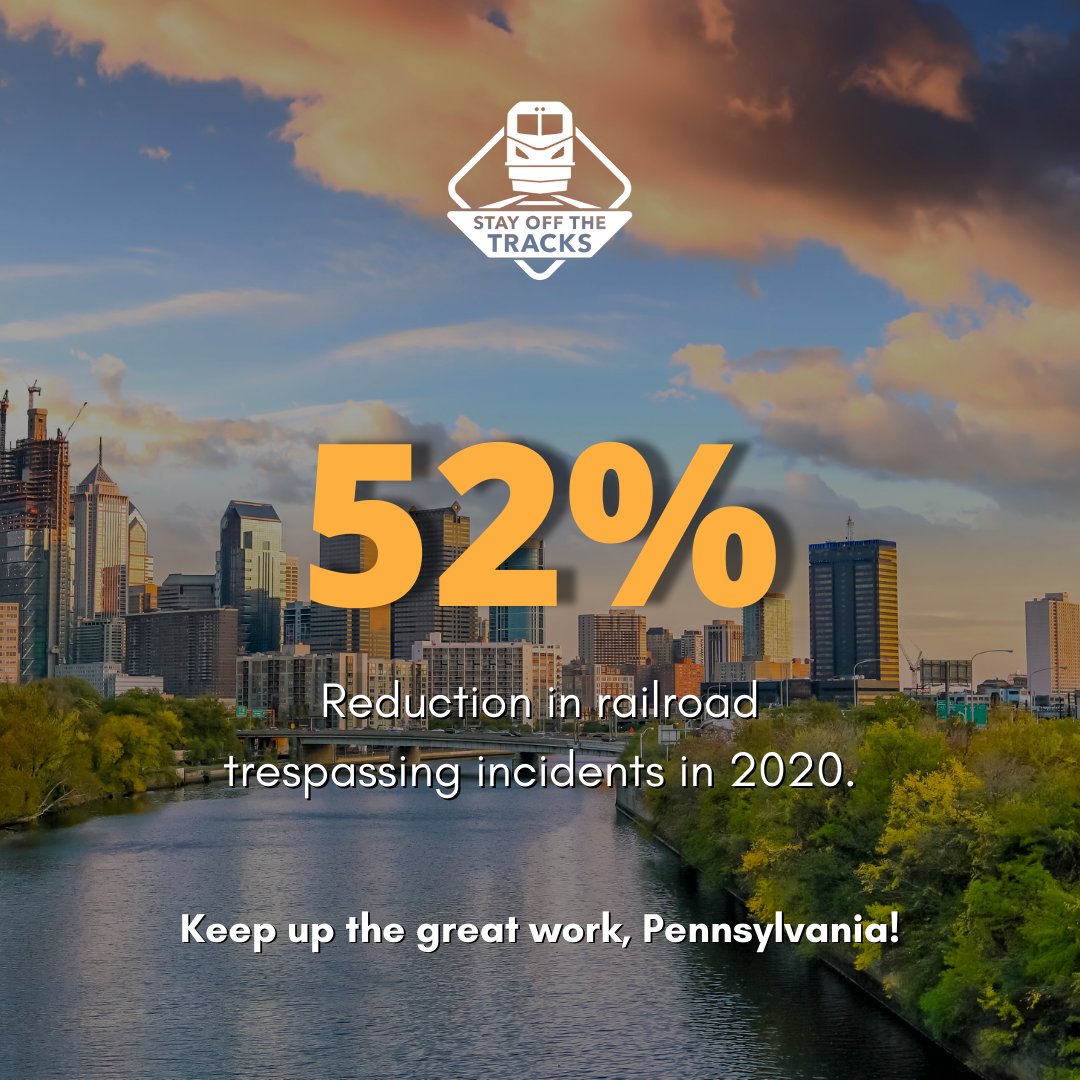 #Pennsylvania! You decreased railroad trespassing incidents by 52% in 2020. Let's continue being a role model and stay off the tracks! pic.twitter.com/FoAJQZ03Ft
