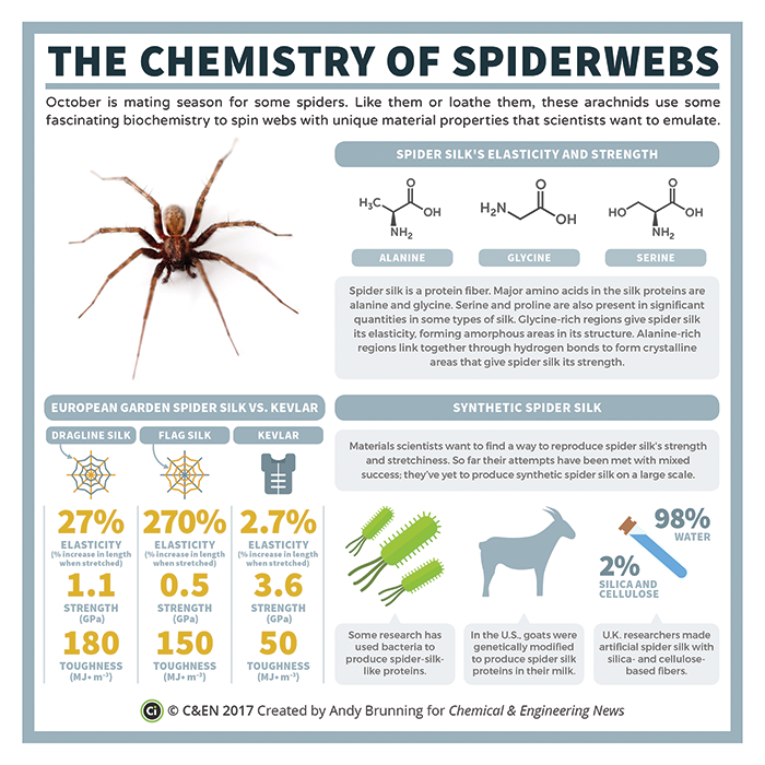 #Halloween! Learn what makes spiderwebs so strong and elastic in this#PeriodicGraphics by@compoundchem. See more infographics at http://ow.ly/VMZM50wYuBL pic.twitter.com/jNahNW1SQV