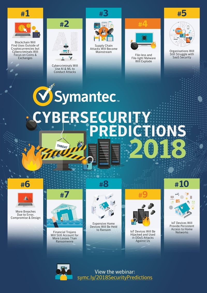 #ransomware attacks like#WannaCry and#Petya. Next year may#CyberAttacks can even get worse as#CyberCriminals are likely to use#MachineLearning and#ArtificialIntelligence. Here's look at#Synmantec has predicted for the year 2018#Infographic@antgrassopic.twitter.com/922bAsY2YD