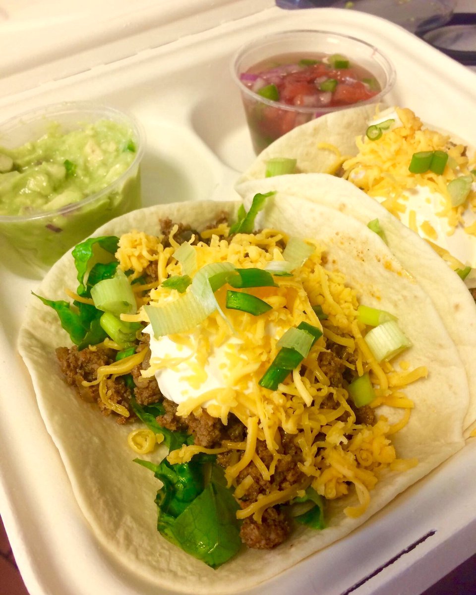 #TacoTuesday!! Seasoned#GroundTurkey topped w/#SourCream,#Cheddar &#GreenOnion on#FlourTortillas w/ house made#Guacamole &#Pico, $7.75 everywhere!#UberEATS &#GrubHub (Poydras location)