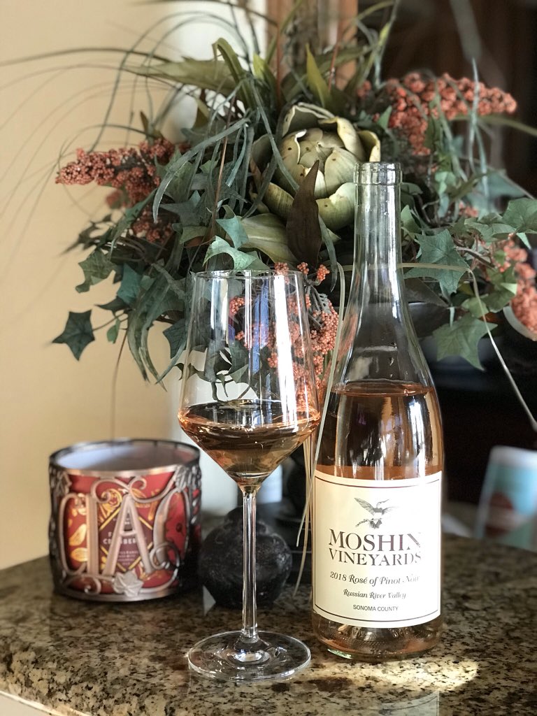 @moshinvineyards Rose’ while waiting on my dinner date. Very pale pink, light citrus with hints of strawberry.#wine#FridayVibes#PinkSociety#happyhourpic.twitter.com/KCxghoE8lC