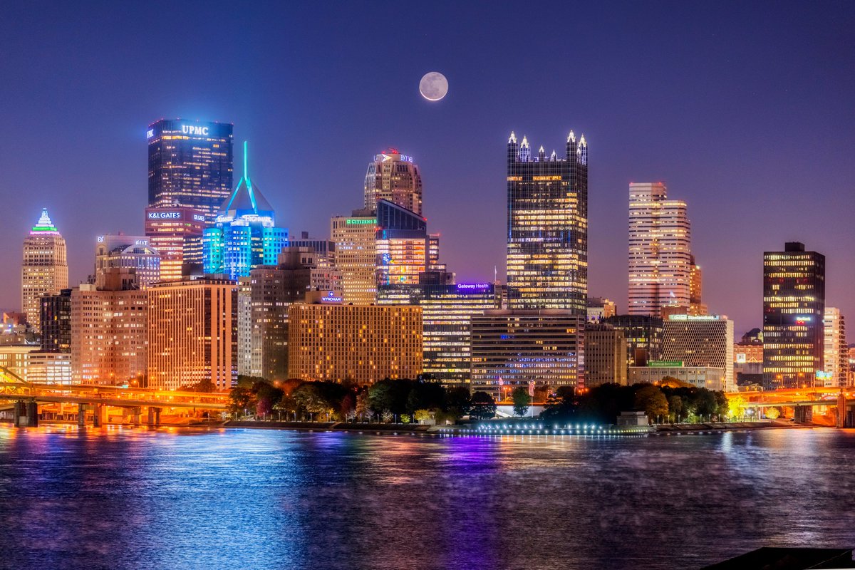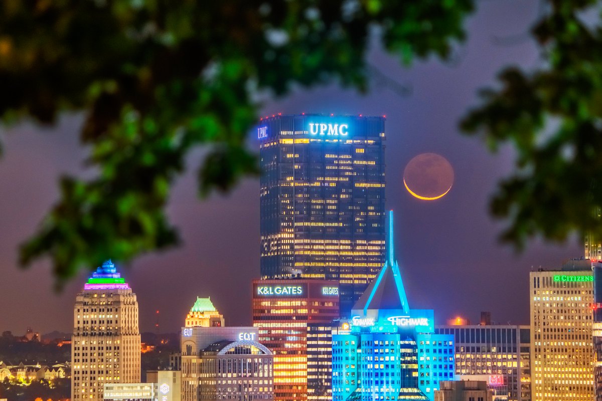 #Pittsburgh, including the one that I went out to capture. I was hoping to get the crescent right behind the Koppers Building, and it crossed the horizon just in time to do that. The tree frame the city and the moon was just a bonus. pic.twitter.com/ZtEZOKHwJm