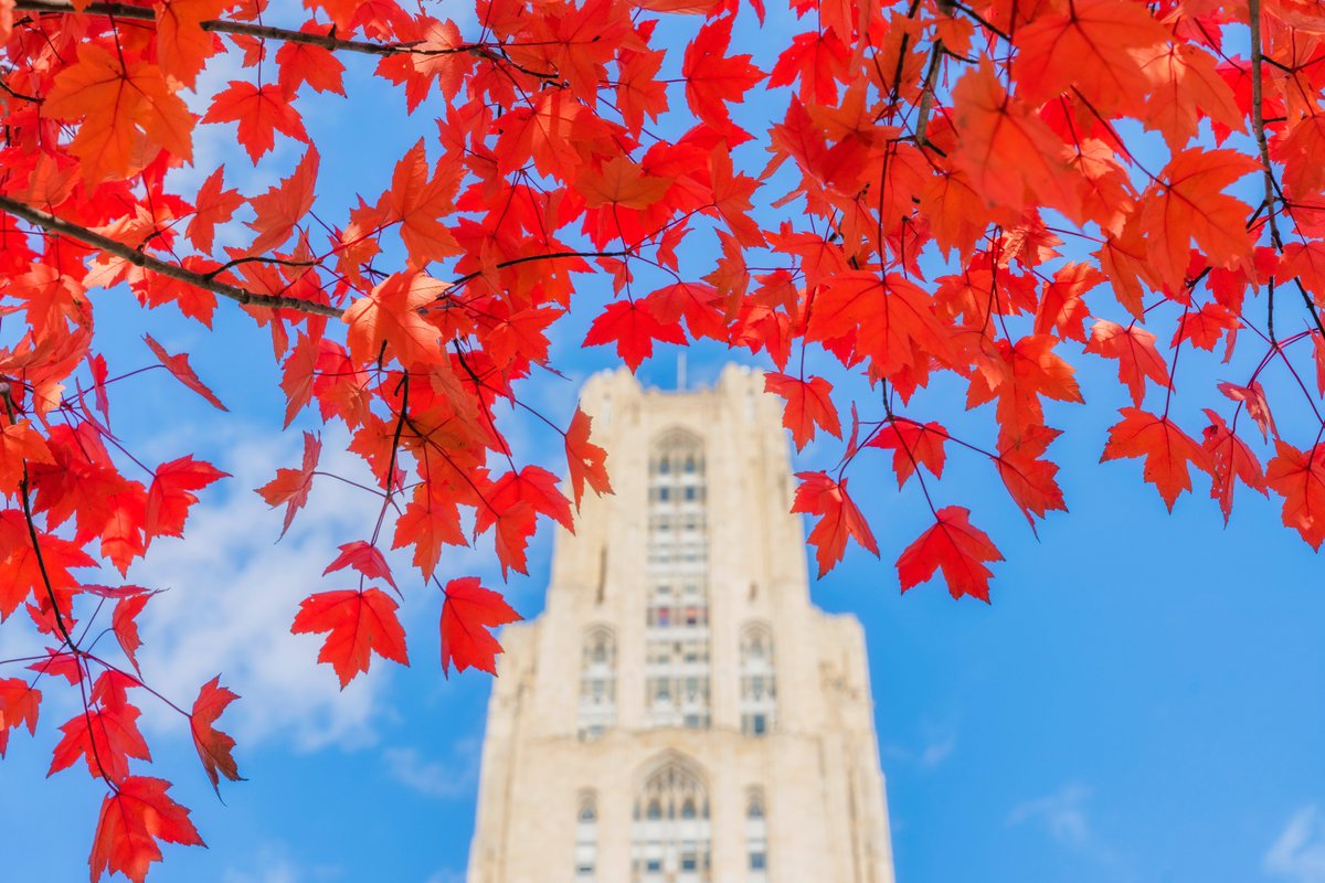 #Pittsburgh, and Pitt's campus is really starting to look incredible. I spent about half an hour with my camera (and myself) in this tree yesterday, capturing these sun-lit leaves as they framed the Cathedral of Learning. pic.twitter.com/Mq0RD8i8x1
