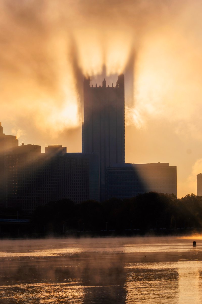 #Pittsburgh was one to remember. I've captured thousands of views of PPG Place, but this one is up there as an all-time favorite. With the sun directly behind the building, the shadow of the spires was perfectly visible on the fog. Just unbelievable. pic.twitter.com/cBcTagSZMT