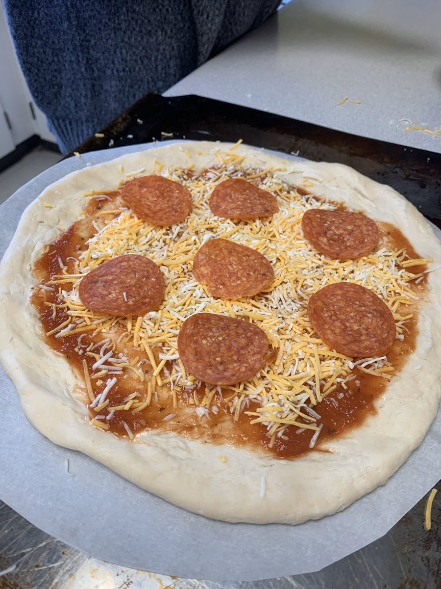 Fun food Friday!! Bakery is making pizza from scratch today.