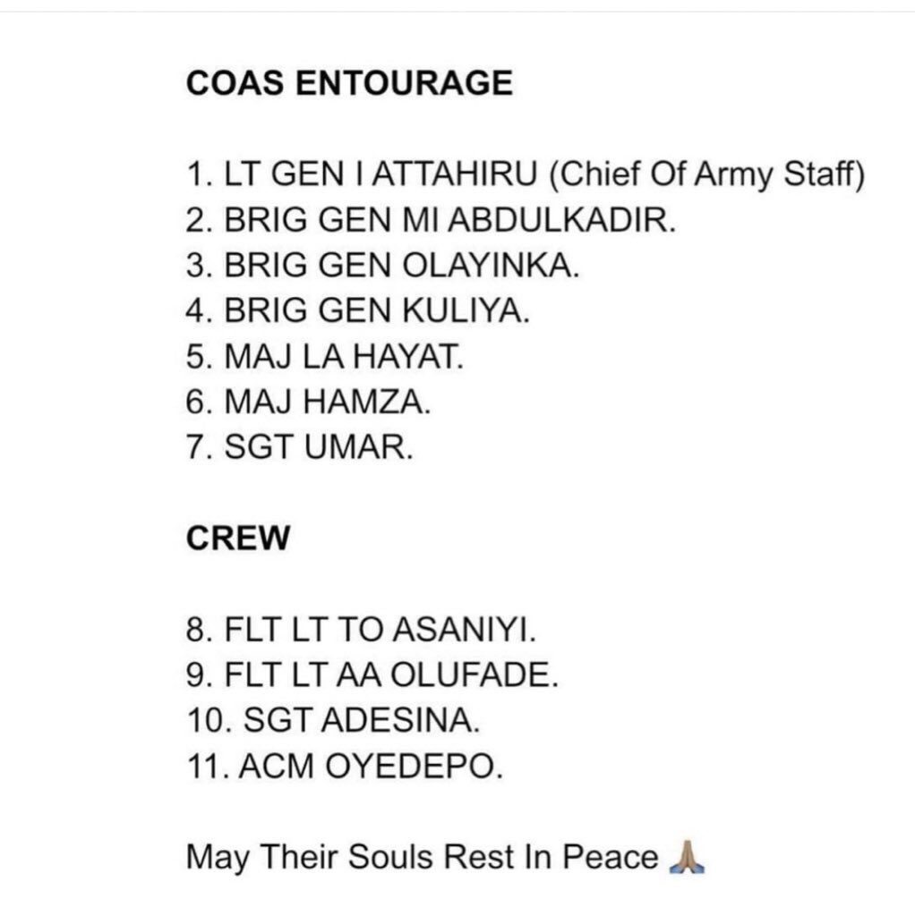 The death of chief of army staff is so painful may his soul rest in peace. But why are we talking about the chief of army staff alone, making it look like the rest that died are not human beings.