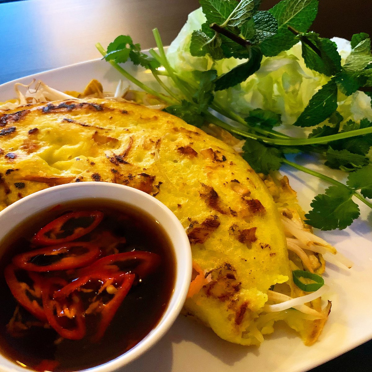 First dish is a vegan broth pho, second dish is a vegan crepe filled with mushrooms & tofu! Third dish is a lemongrass tofu bun :) #plantpower pic.twitter.com/gLkRD6DHdx