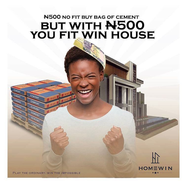 With just N500 you stand the chance to win the grand prize of a Luxury Home worth 50 Million Naira or DAILY cash prize of 10k for 20 people, 20k for 10 people and 50k for 2 people Follow Homewin and be the first to win when we launch in April.
