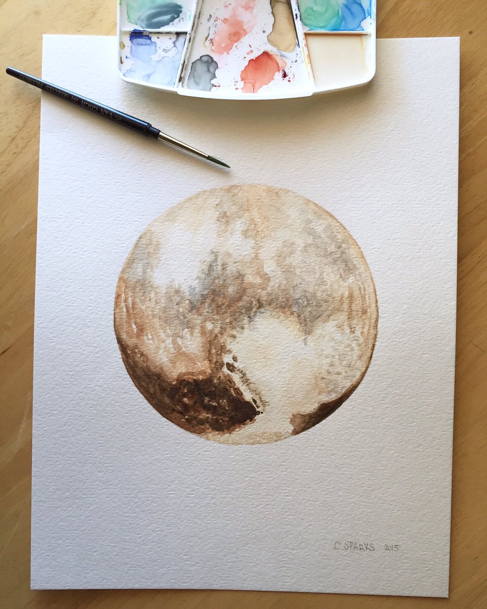 #watercolor painting, painted hours after pictures were released from#plutoflyby@NASANewHorizons@NewHorizons2015 .#sciart#painting#astroart DM to purchase.pic.twitter.com/vMmAWIfwfG