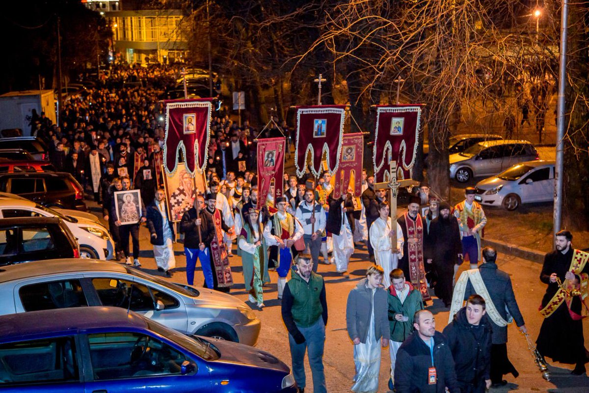 #Montenegro tonight. While the NATO backed government is voting a law which would enable the requisitioning of Serbian Orthodox Church property, thousands of church followers peacefully take to the streets blocking roads across the country.#Podgorica pic.twitter.com/quILT2dnvR