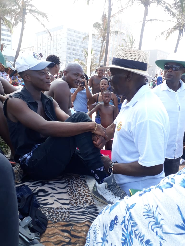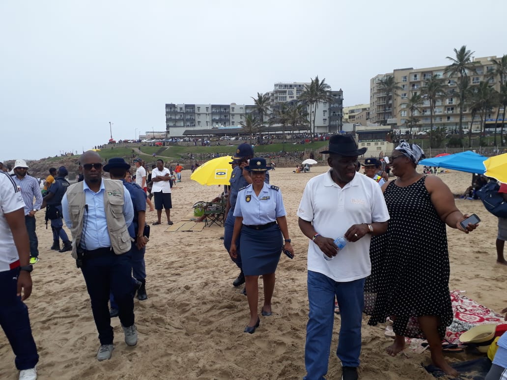 #PoliceMinistry Minister Bheki Cele interacts with community members at Margate beach in KZN as part of#SaferFestiveSeason visits and operations. NPpic.twitter.com/C3d7dGSdJ2