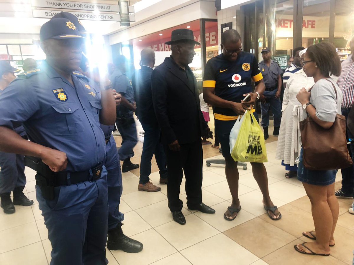 #PoliceMinistry KwaZulu-Natal, Minister of Police &@KZNTransport MEC Kaunda proceeded to the Gateway Shopping Mall, conducting a walkabout and interacting with shoppers in support of#SaferFestiveSeason#PoliceVisibility ME.pic.twitter.com/95cXfRoPo9
