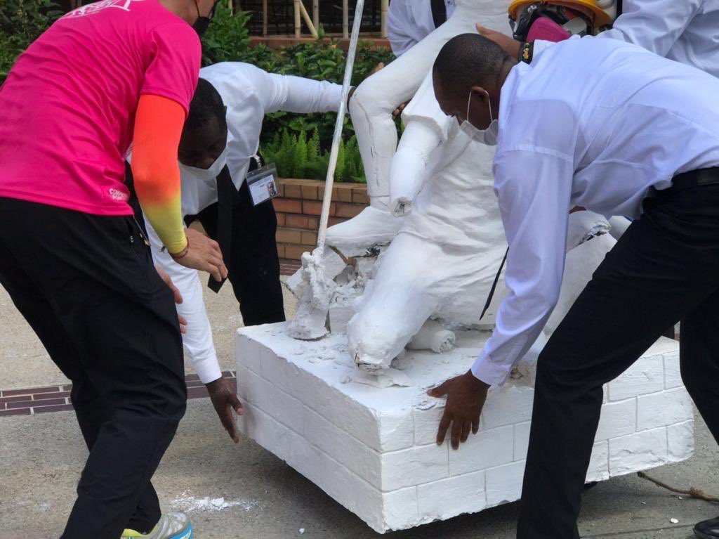 The gods of democracy statue is removed and destroyed by PolyU today after its reveal on 12 June.