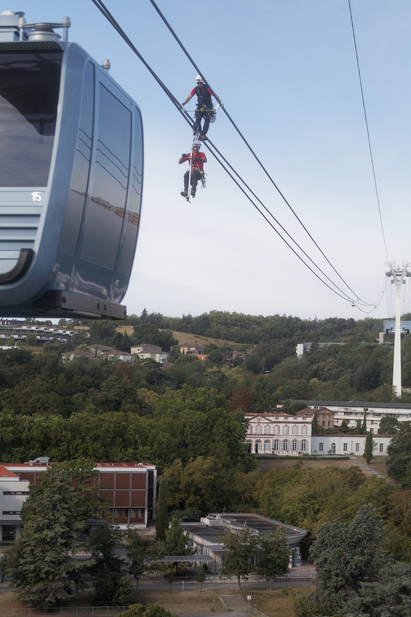 , les sapeurs-#pompiers du#GRIMP du@sdis31officiel profitent des essais menés par Tisséo sur le futur téléphérique pour se former et mieux appréhender ce nouveau risque urbain de la métropole toulousaine.