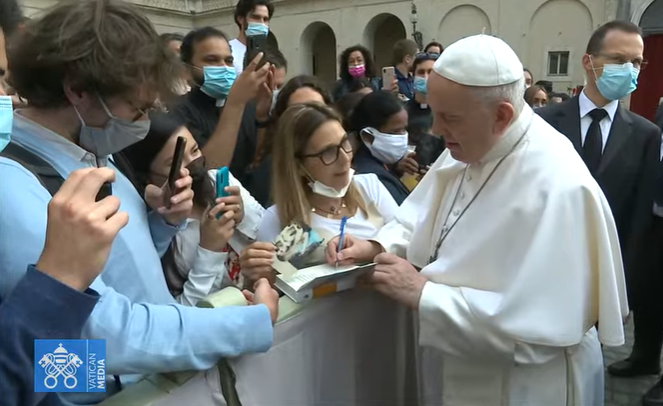 Lots of book signings today and a mini-pope! It's the Wednesday general audience at the