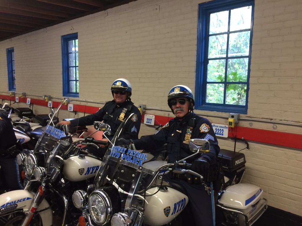 @CommissBratton visiting the motorcycle mechanics that keep the motorcades running#PopeinNYC#POTUS#NYPDpic.twitter.com/e9yFHgc4YV