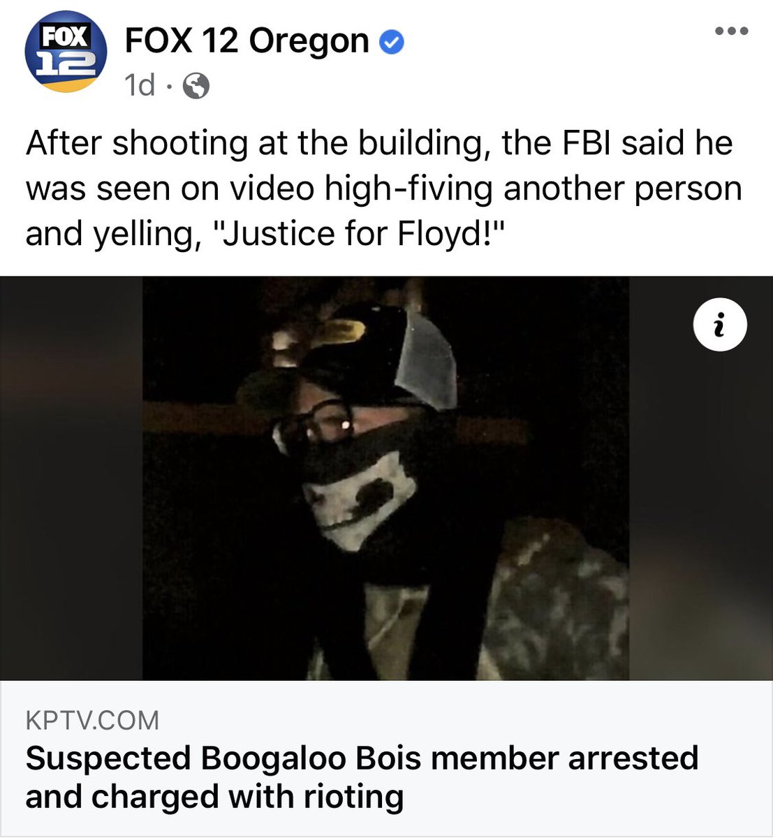 After shooting at the building, the FBI said he was seen on video high-fiving another person and yelling, "Justice for Floyd!"