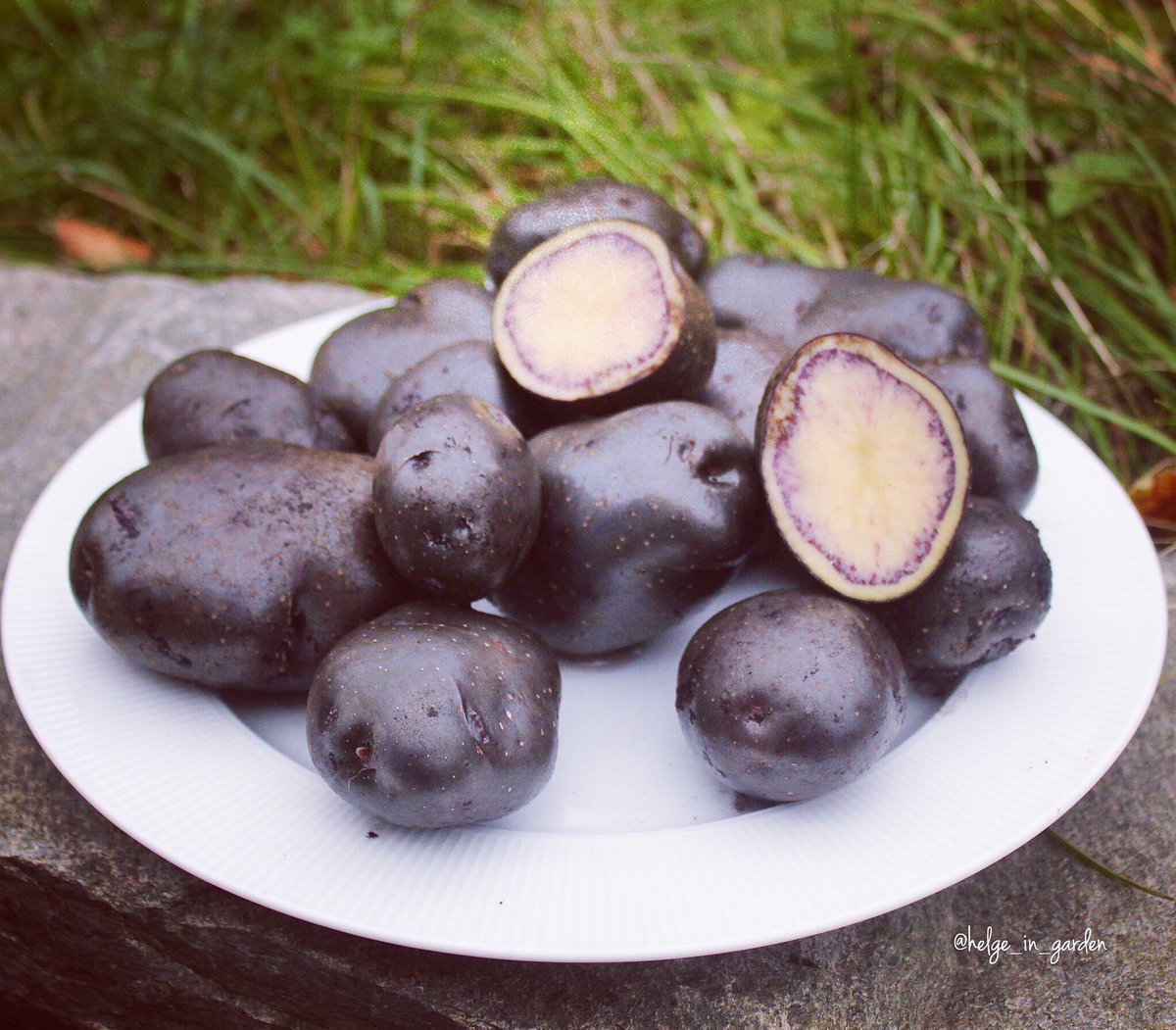 Autumn - time for tasty potatoes - like this blue/ black potato «Shetland black» From our October garden.