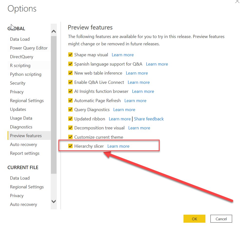 #PowerBI Desktop dispondremos los#PowerBIAdicto por fin, habilitando la nueva preview feature, de un segmentador jerárquico o Hierarchy slicer. pic.twitter.com/kdo4I9WSFx