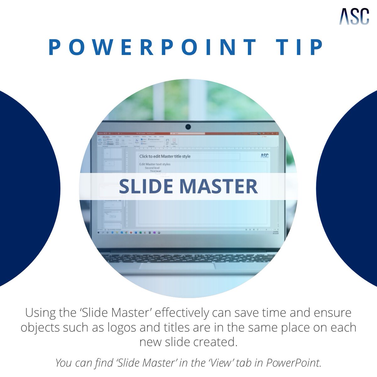 We always ensure our 'Slide Master' is set up correctly when creating presentations. The logo, colour scheme, fonts, etc. This way, slide components are uniform, for example the logo and title will be in the same place on each new slide you insert.