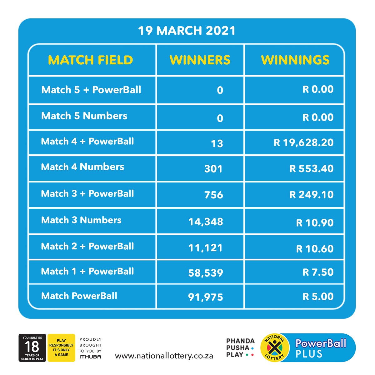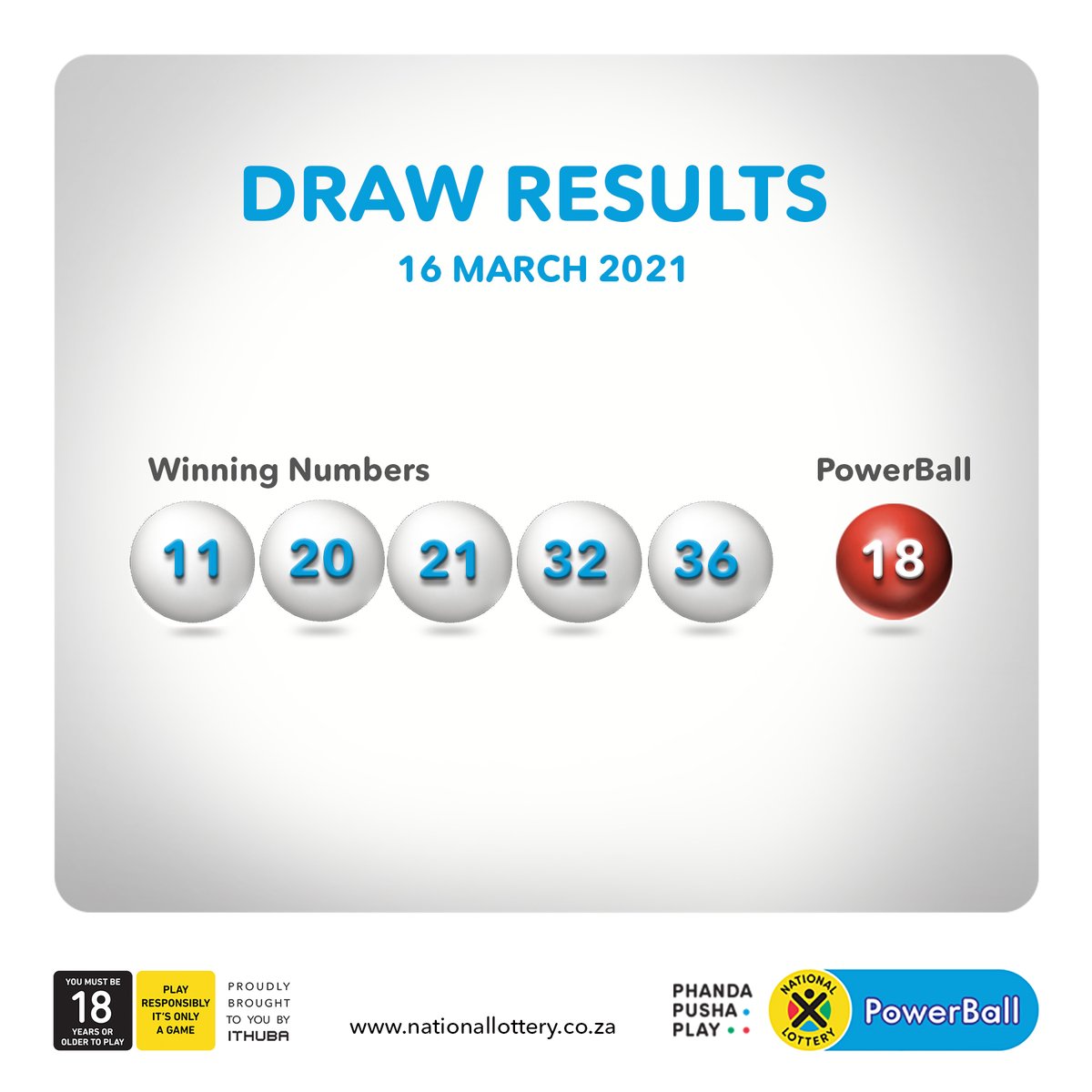 #DrawResults for 16/03/21 are:#PowerBall: 11, 20, 21, 32, 36#PowerBall: 18#PowerBallPLUS: 14, 35, 38, 45, 46#PowerBall: 05 pic.twitter.com/UzEB7BMvuw