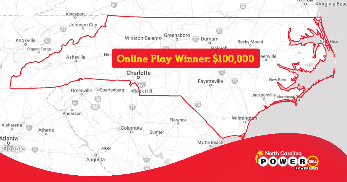 #NCLottery player won $100,000 in last night’s#Powerball drawing. The winning ticket was sold through Online Play. Congratulations on the big win! pic.twitter.com/apx3cu1rr1