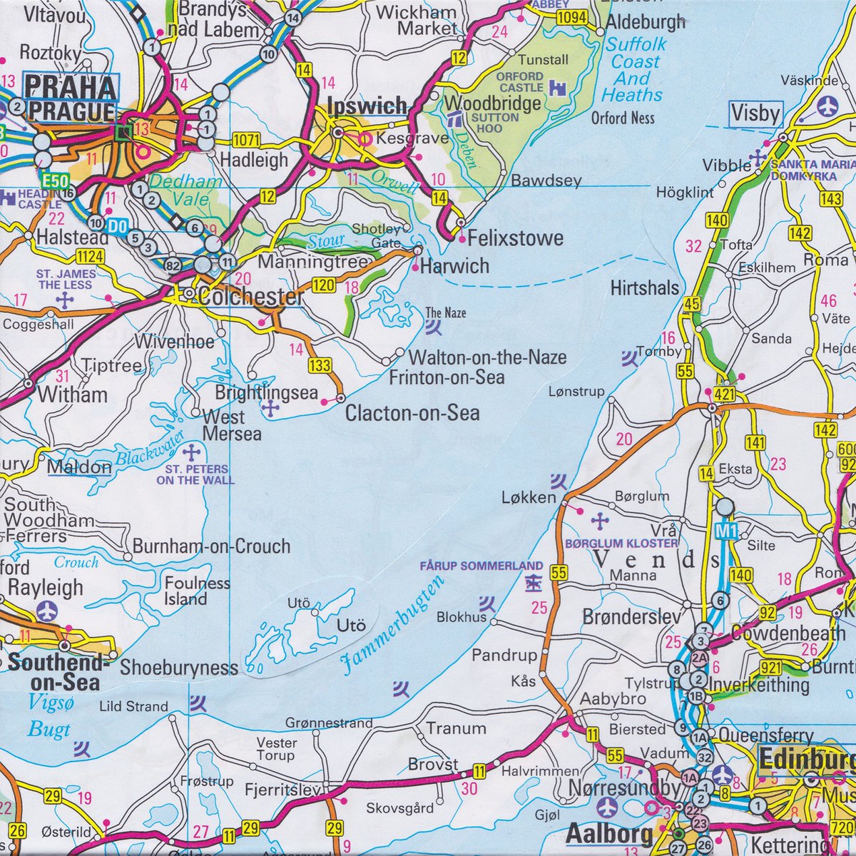 An original collage, created from fragments of EU member state road maps combined with fragments of UK road maps, available as part of