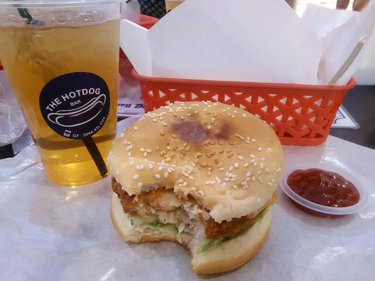 #PrawnBurger with yummy Tomato Sauce & Iced Lemon Tea@TheHotDogpic.twitter.com/KE63ydX0U4