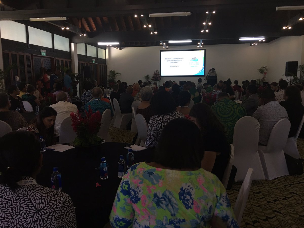 #PreCOP2017. Fiji Prime Minster proudly presents how Fiji leads in gender equality. pic.twitter.com/OCFwnaL3Em