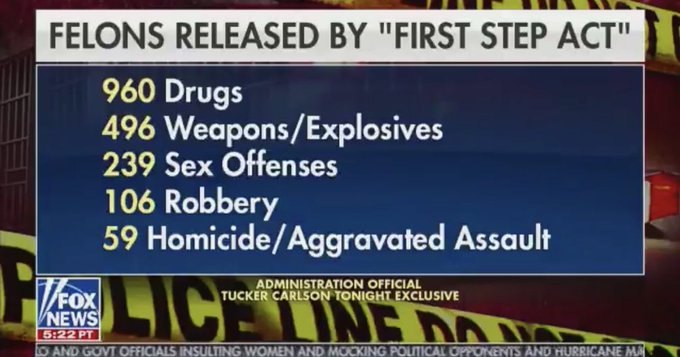 #FirstStepAct is like all#PrisonReform; releasing dangerous criminals back into society. Of the 2,023 inmates sprung from prisons, these were their crimes. Trump lied that only non-violent inmates were released. In November the first murder by one of them was reported. pic.twitter.com/PDXq6l2ZwF
