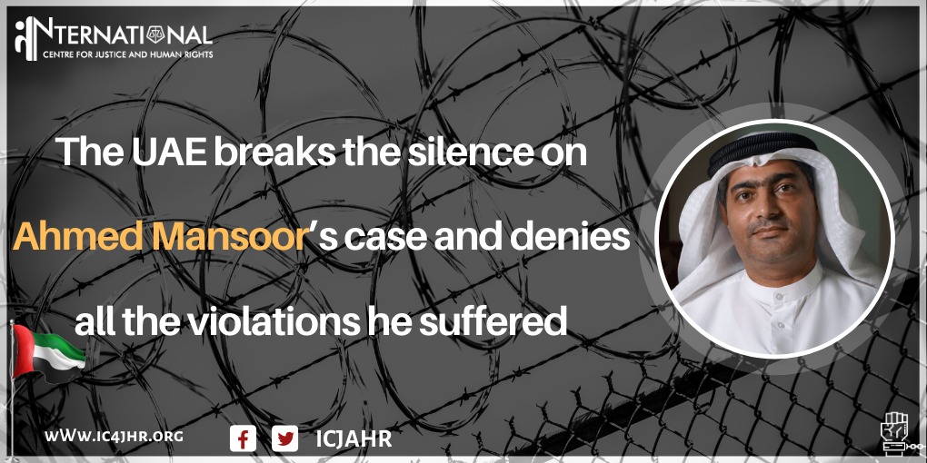 @MoFAICUAE denies all the violations suffered by@Ahmed_Mansoor since his arrest & accuses#HumanRights NGOs of spreading false information. Yet, the#UAE refuses to allow#UN experts to visit#Prisonersofconscience in prison.#FreeAhmed https://bit.ly/2FDRHFz pic.twitter.com/Nm7n3RXfvW