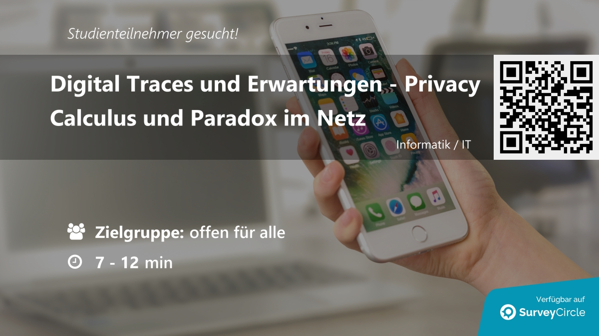 Teilnehmer für Online-Studie gesucht! Thema: "Digital Traces und Erwartungen – Privacy Calculus und Paradox im Netz" https://www.surveycircle.com/C695SW/ via