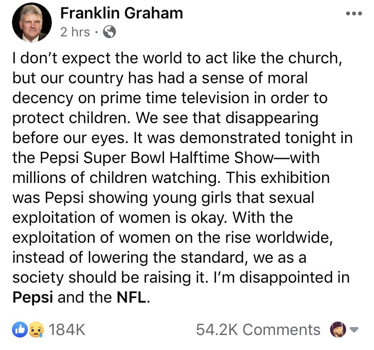 #truthbomb from@AbbyJohnson speaking truth to power and challenging men who confirmed others in sin by validating the NFL’s super bowl halftime sex orgy. Women deserve more. We are more.#prowoman#profamily https://twitter.com/abbyjohnson/status/1224477229356208128 … -