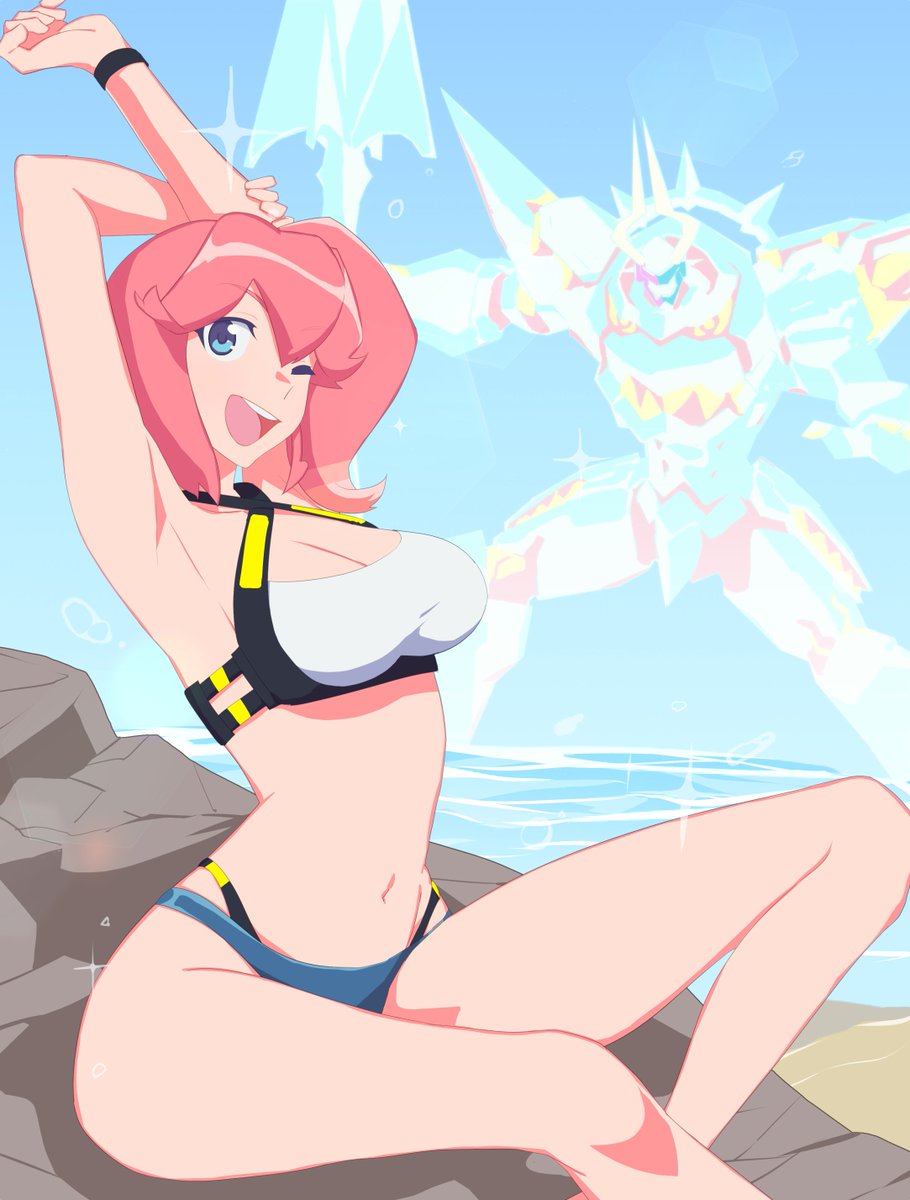 @arikindows10 (reposted with their permission). As always, thank you for the amazing work! Aina Ardebit goes to the beach for a great time, while Galo de Lion's greatness echoes across space and time.#PROMARE#ainaardebit#galodelion#trigger#beach#mechapic.twitter.com/3HeqH9nttE