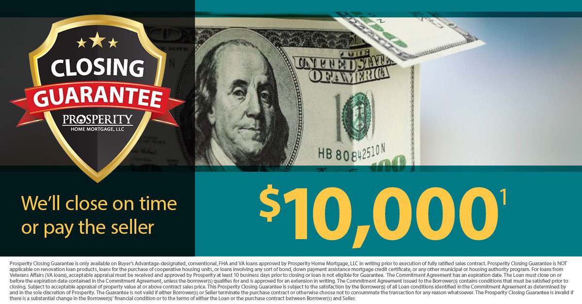 Ever wonder how you can leverage your offer for your dream home in a competitive market? Prosperity closing guarantee will do just that - we promise to close on time or give the seller $10,000!