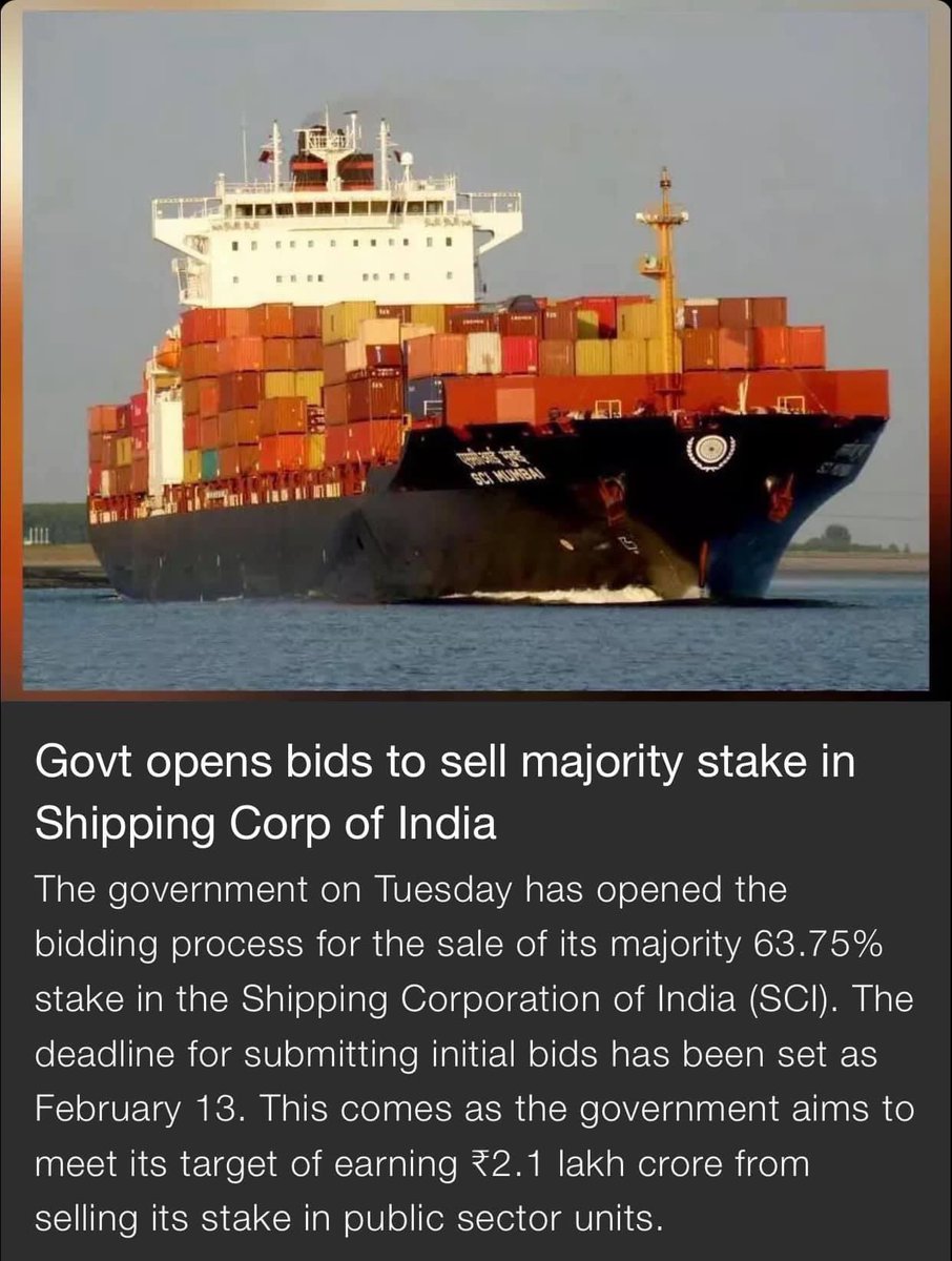 Government Invites Bids For Privatisation Of Shipping Corporation of India, To Sell Complete 63.75 Per Cent Stake