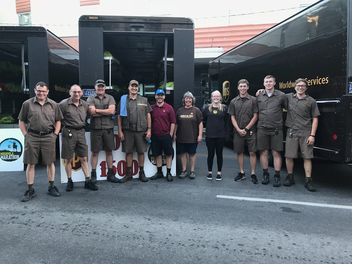 UPSers volunteering at 5a.m. Sunday for Missoula Run Wild Marathon! Big crowds, 1500 runners, 6 UPS pkg cars hauling runners gear to the finish line! You make us proud!