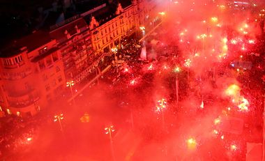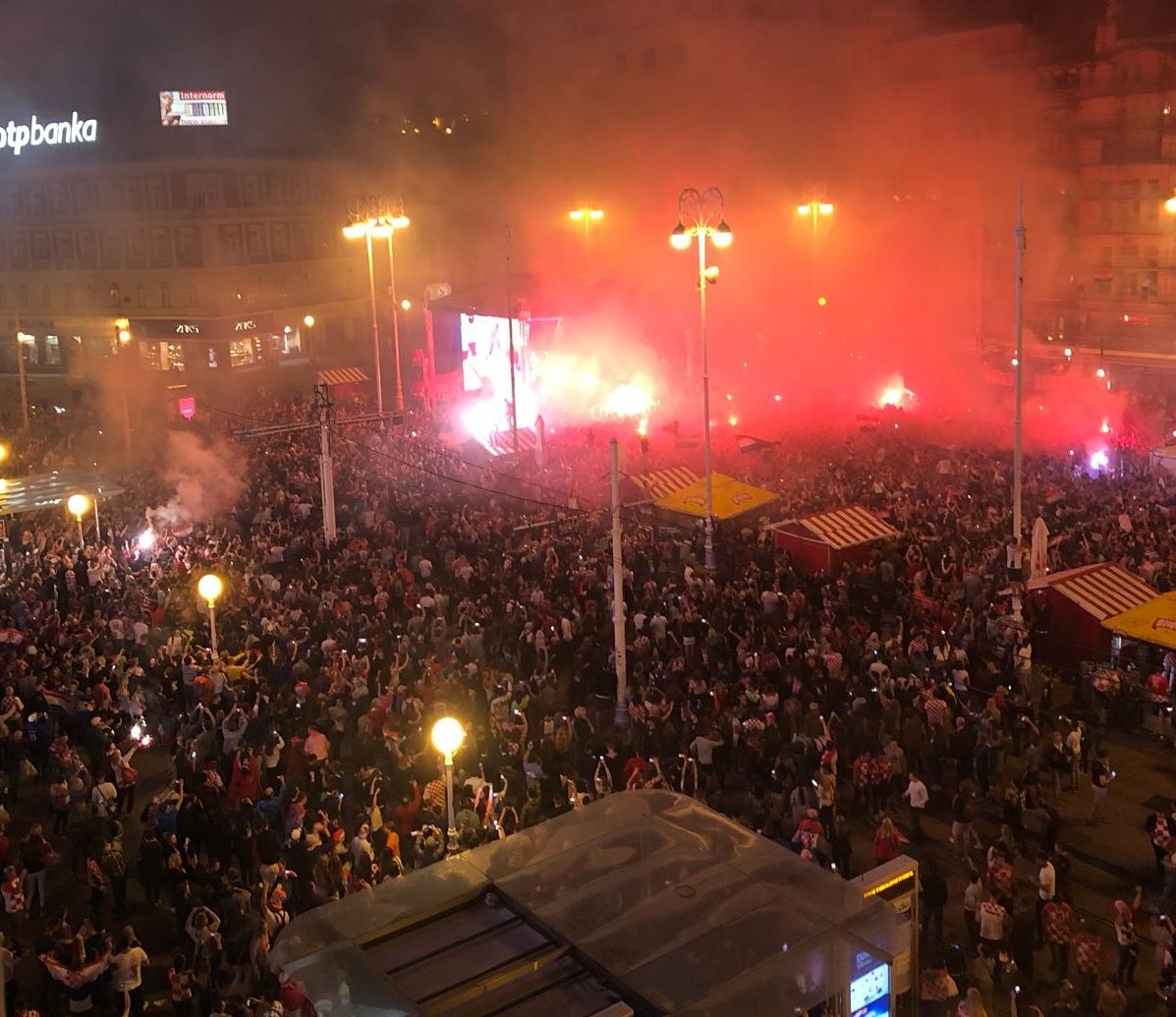 Vatreni arrived at the airport around 3pm now it's 7:45pm and they still haven't arrived to the Ban Jelačić square (it's a very short distance, around 18km) they are taking this long because they're signing jersey and singing with fans