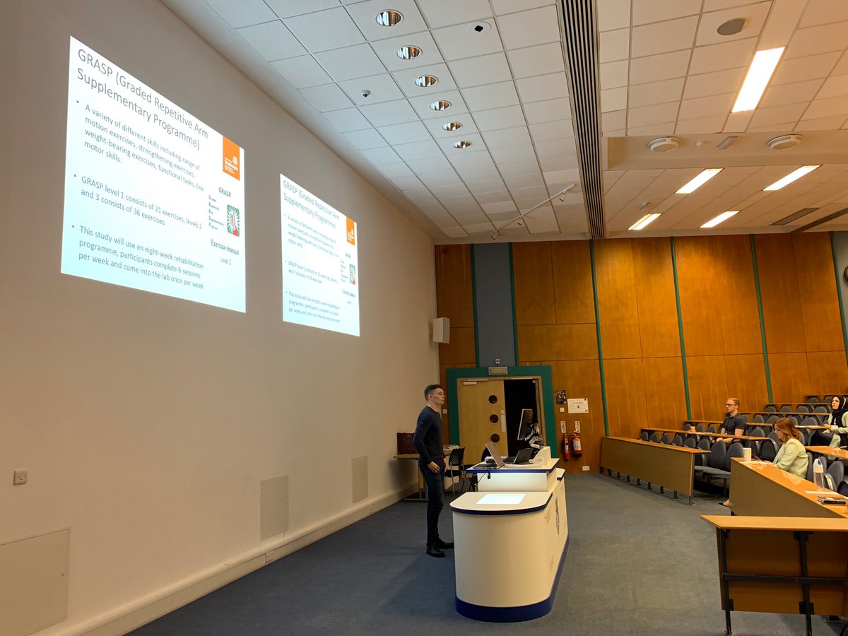 #psychologicalsciences&health is sharing his research at#DSMS19 into the effect manipulating intrinsic motivation & attention control during GRASP has on the motor performance of stroke survivors, especially interesting following stroke awareness month in Maypic.twitter.com/3cUKJvmZ6L