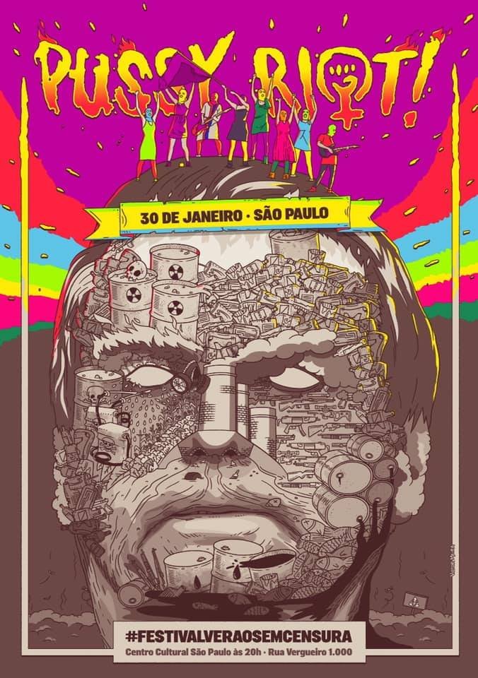 #pussyriot displaying the tropical scumbag#Bolsonaro. Unlike#Россия there is still right and place to protest,#festivalveraosemcemsura pic.twitter.com/i5Kan7fu1l