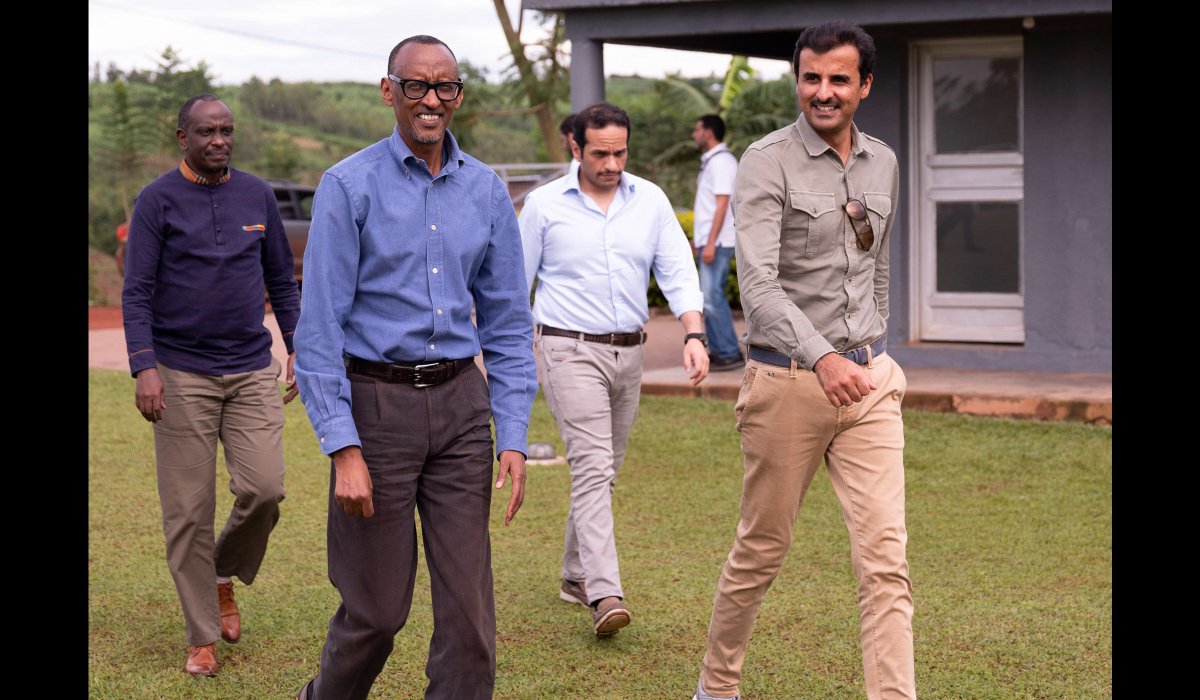 #VisitRwanda we mean business! Our very own President takes The Amir Sheikh Tamim bin Hamad Al-Thani of#Qatar on a tour in@AkageraPark Welcome to#Rwanda Sir!pic.twitter.com/3x4LrztaF6
