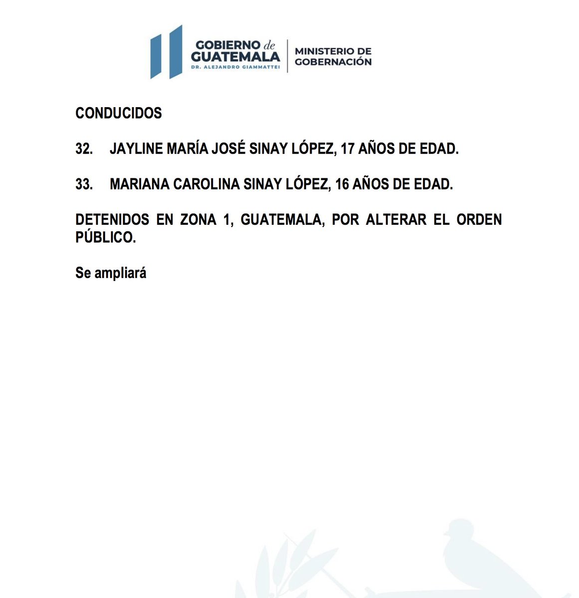 #QueSeSepa Este es el informe de la PNC de personas detenidas durante jornada de manifestaciones pacificas en ciudad de Guatemala. Por favor compartir. pic.twitter.com/BTXD7KnIVA